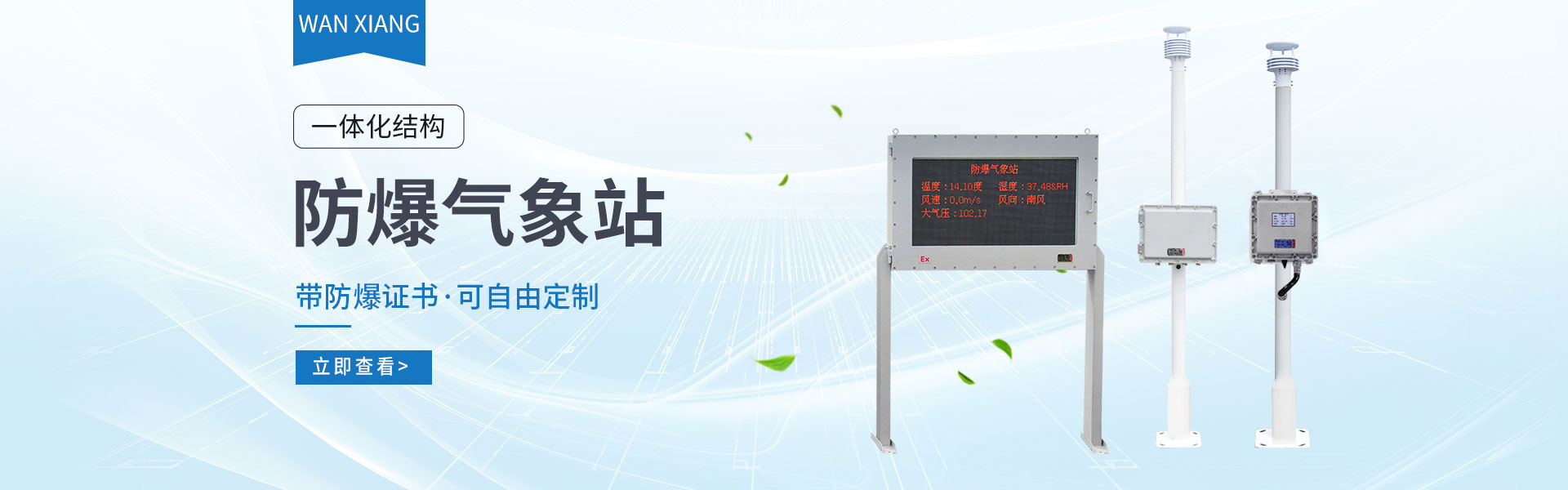 山東萬象環境科技有限公司官網主要產品有防爆氣象站,校園氣象站,農業氣象站,負氧離子監測站,超聲波氣象站,歡迎咨詢19853697985!